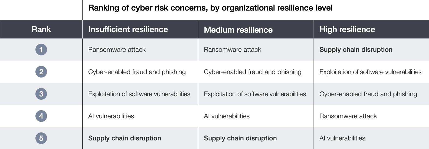 Figure 2: Top cyber risk concerns by cyber resilience level. (Source: WEF Global Cybersecurity Outlook 2026)